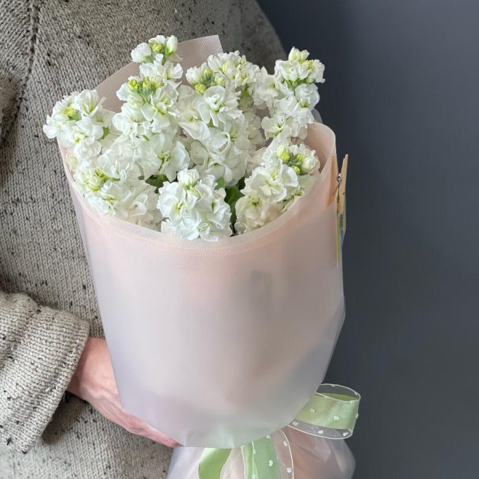 Лента – 2 шт.Маттиола – 9 шт.Упаковка дизайнерская – 1 шт.Открыточка с вашими пожеланиями – 1 шт.