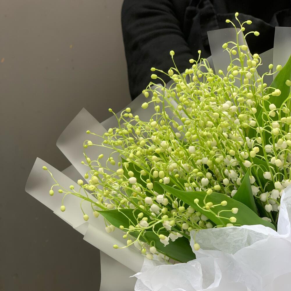 ландыши пучок – 1 шт.Упаковка дизайнерская – 1 шт.Лента атласная – 1 шт.
