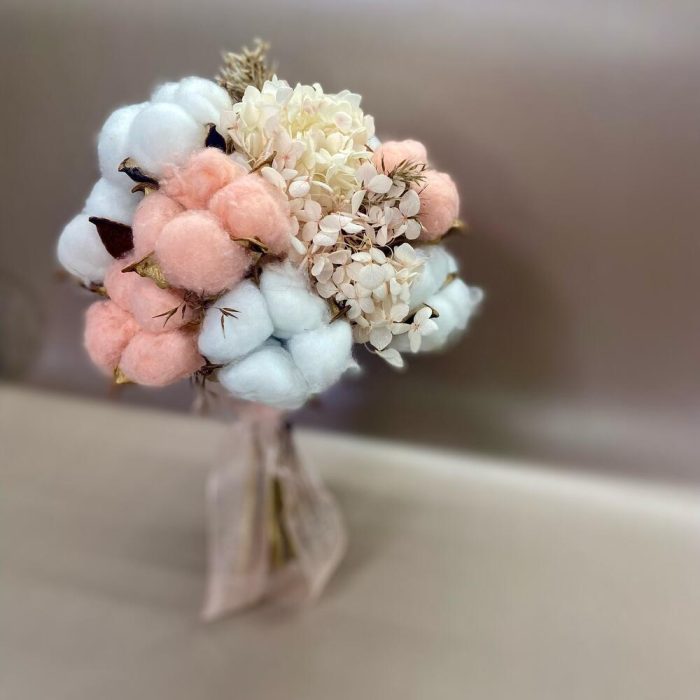 Букет из Хлопка и стабилизированной Гортензии