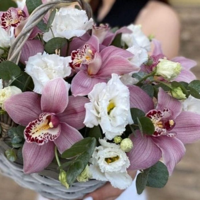 Корзина с лизиантусом и Орхидей “Агния”
