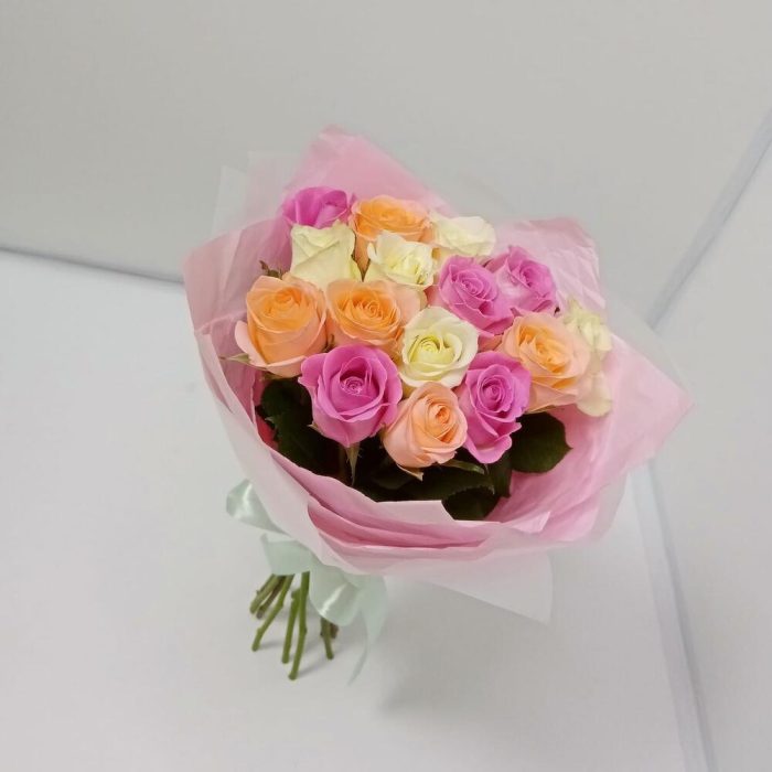 Букет из 15 роз нежный микс