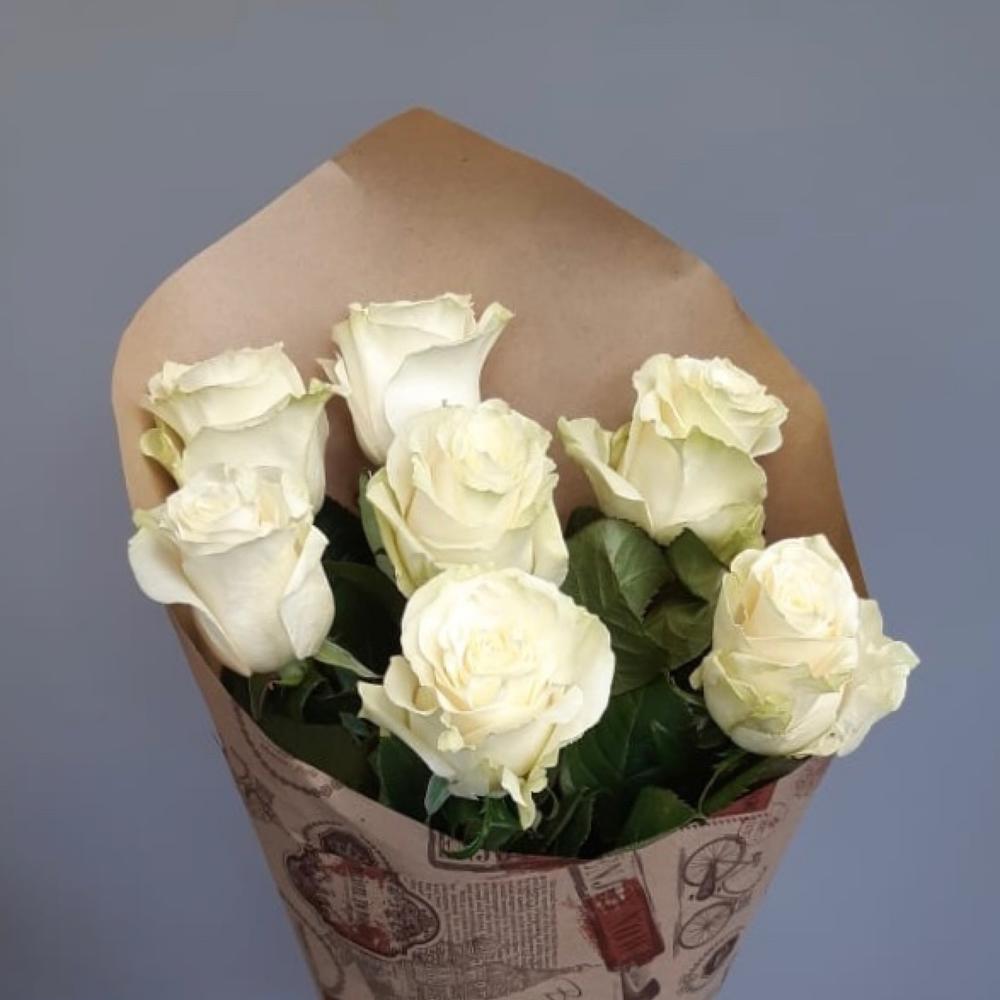 Роза – 7 шт.Крафт – 1 шт.Лента атласная – 1 шт.