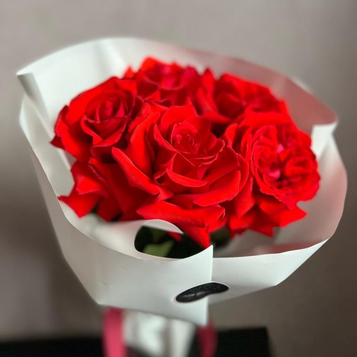 декоративная упаковка – 1 шт.Атласная лента – 1 шт.Роза Нина – 5 шт.