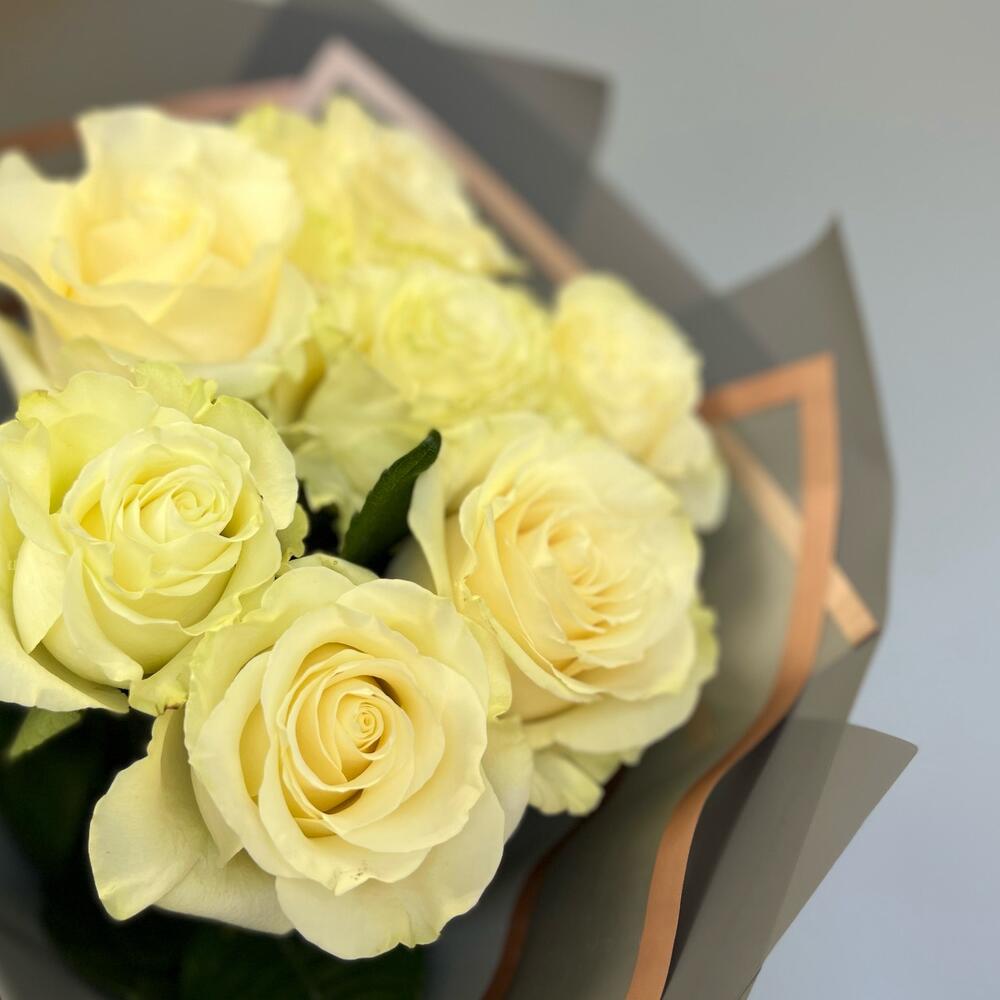 Роза Эквадор – 7 шт.Упаковка дизайнерская – 2 шт.Лента атласная – 1 шт.