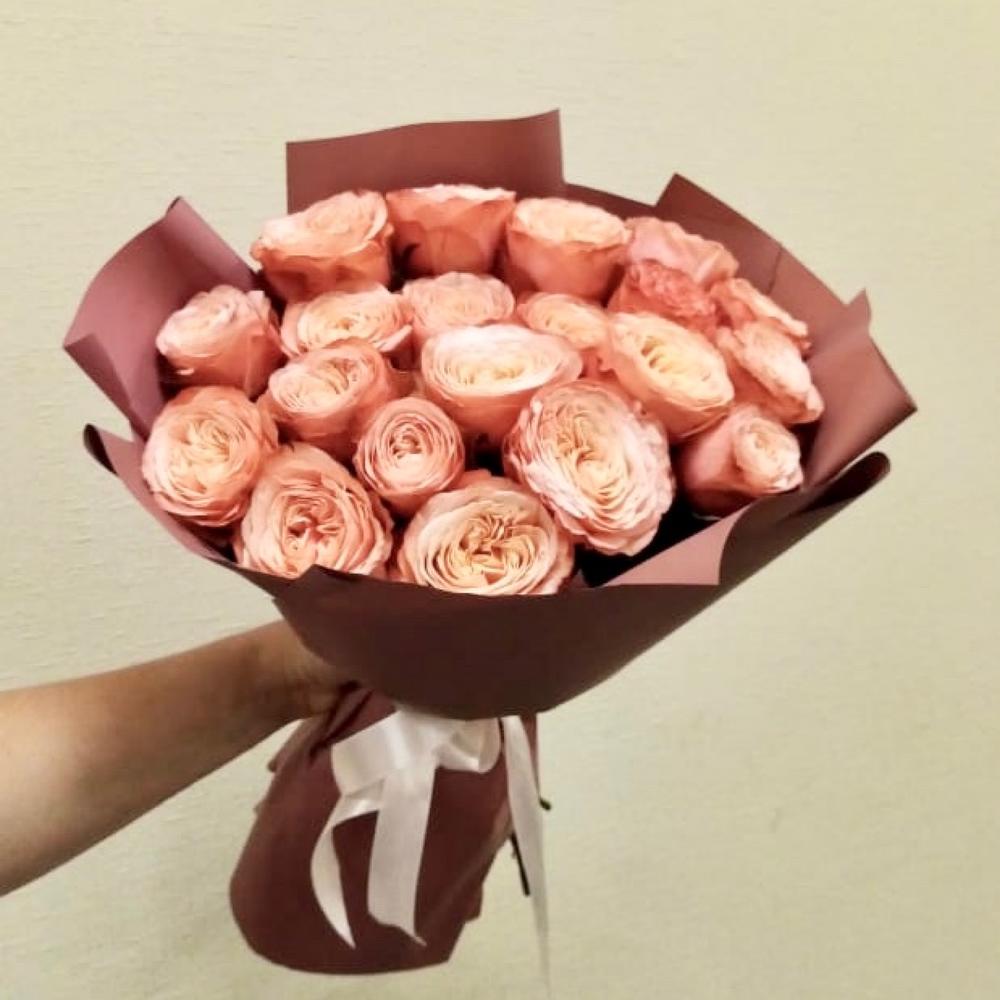 Пионовидная роза – 19 шт.Упаковка дизайнерская – 1 шт.Лента атласная – 1 шт.