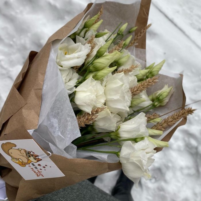 Лизиантусы с пшеницей в крафте